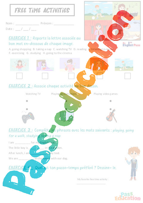 Exercices Free time activities – Apprends l’anglais avec Kelly and James pdf