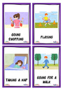 Exercice 3 : Complète les phrases avec les mots suivants : playing, going for a walk, studying, taking a nap