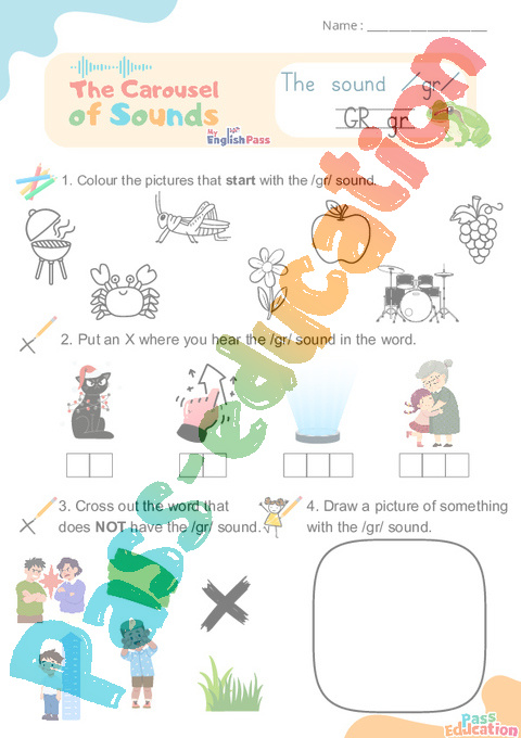 Carousel of Sounds : 3eme Maternelle 1ere, 2eme, 3eme, 4eme, 5eme Primaire – Vidéo interactive + Fiche sur le son : /gr/ gr.