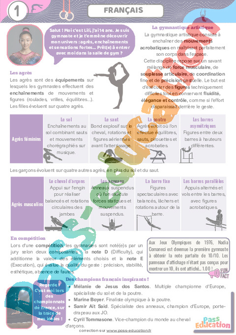 Correction Gymnastique – Fichier d’activités : 1ere, 2eme, 3eme Secondaire pdf