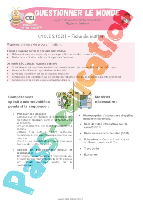 1 Fiche de préparation Hygiène dentaire : 2eme Primaire pdf