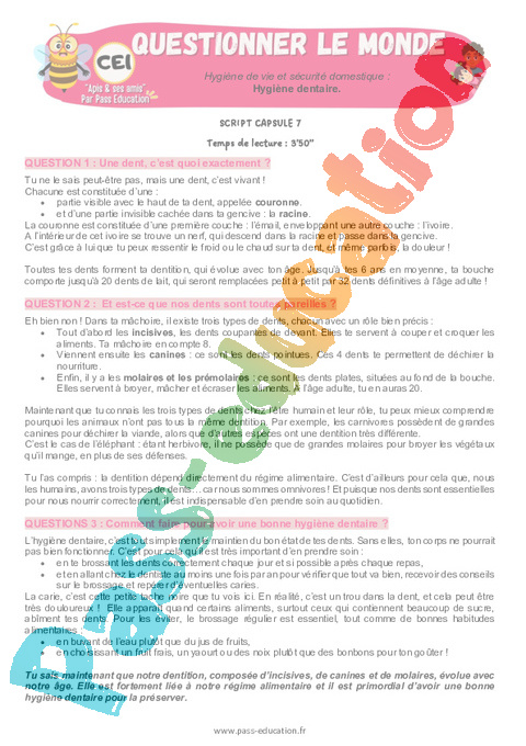 3 QCM capsule vidéo Hygiène dentaire : 2eme Primaire rtf