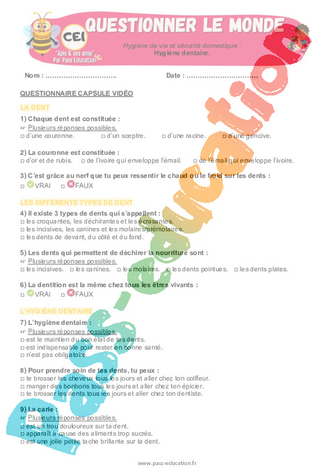 3.2 Correction QCM capsule vidéo Hygiène dentaire : 2eme Primaire pdf