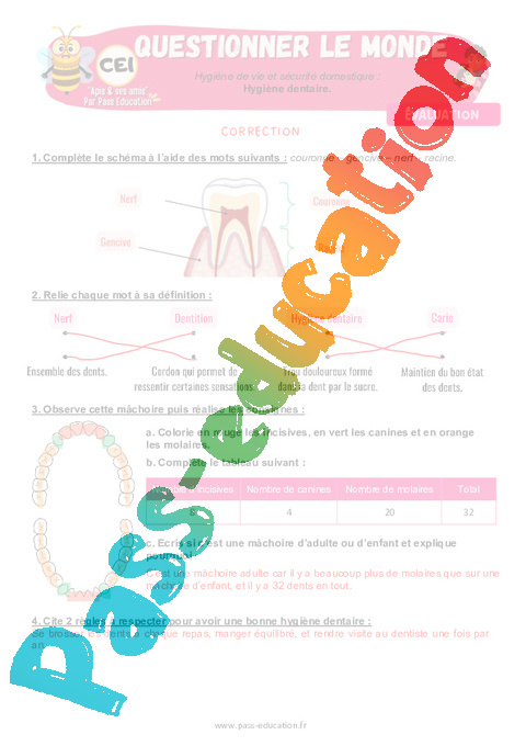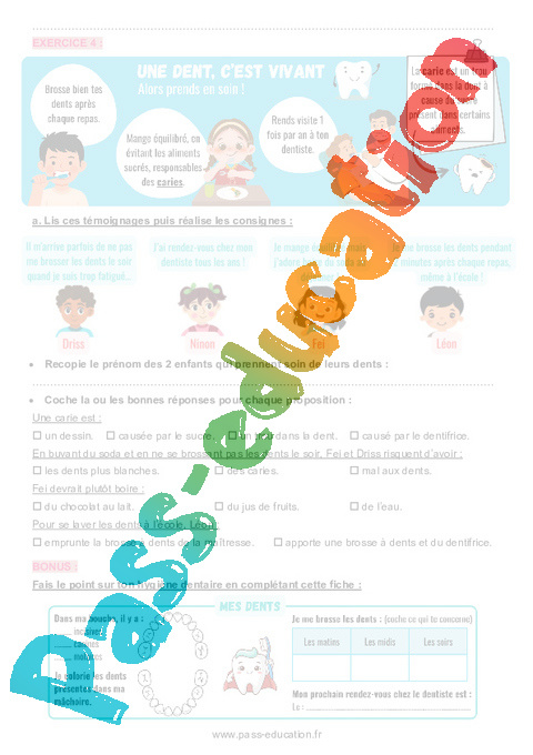 4.1 Correction Fiche Elève Hygiène dentaire : 2eme Primaire pdf
