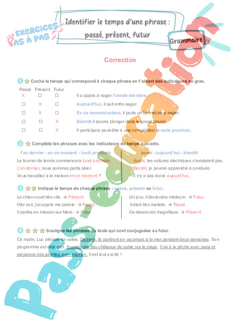 Identifier le temps d’une phrase – passé, présent, futur : 3eme Primaire – Exercices Pas à Pas pdf