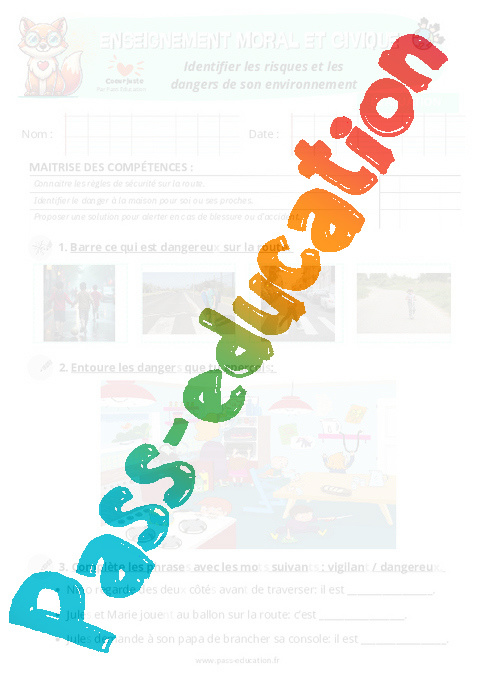 Identifier les risques et les dangers de son environnement : 1ere Primaire – Evaluation – EMC