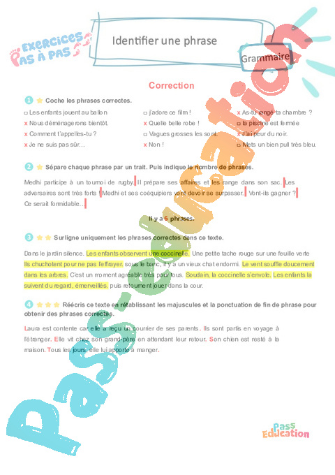 Correction Identifier une phrase : 3eme Primaire – Exercices Pas à Pas pdf