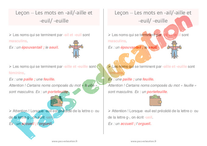 | Leçon à apprendre : Les mots en -ail/-aille euil/-euille |