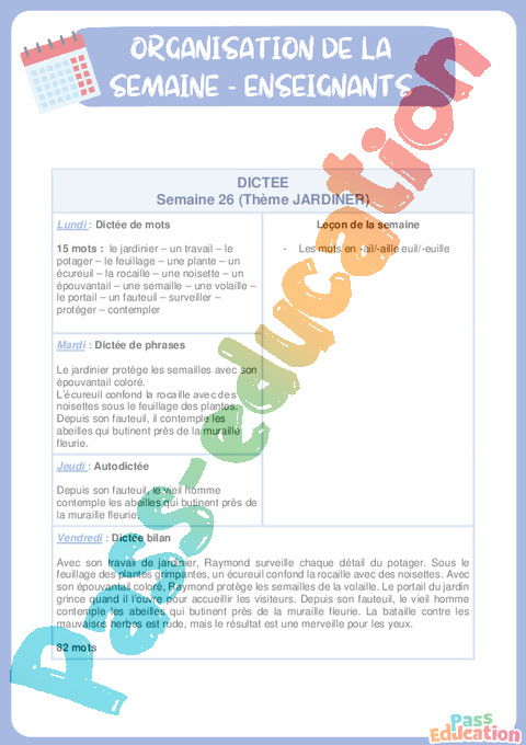 Correction 26. Semaine 26 Jardinier : 5eme Primaire – Dictée progressive hebdomadaire (n°26) rtf