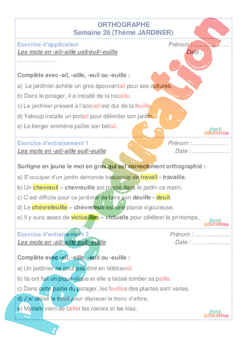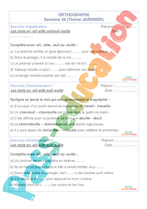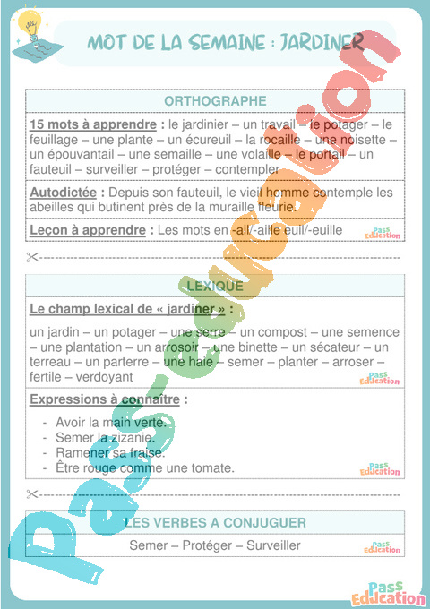 Correction 26. Semaine 26 Jardinier : 5eme Primaire – Dictée progressive hebdomadaire (n°26) pdf