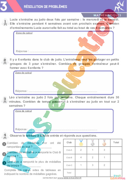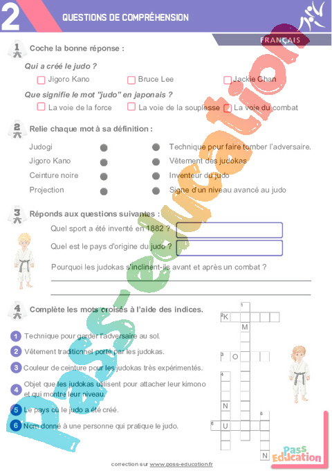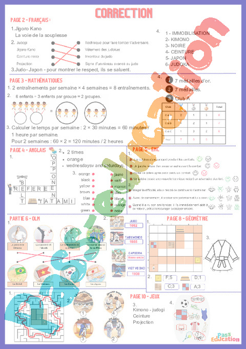 Correction Judo fichier d’activités pour : 2eme, 3eme Primaire pdf