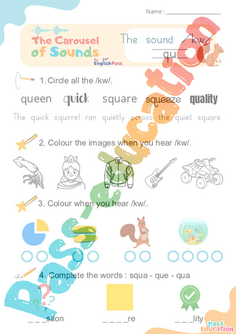 Carousel of Sounds : 3eme Maternelle 1ere, 2eme, 3eme, 4eme, 5eme Primaire – Vidéo interactive + Fiche sur le son : /kw/ qu.