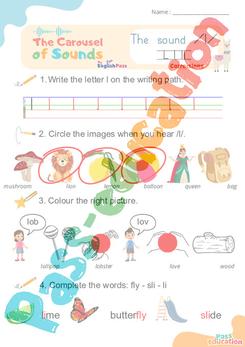 Carousel of Sounds : 3eme Maternelle 1ere, 2eme, 3eme, 4eme, 5eme Primaire – Vidéo interactive + Fiche sur : /l/.