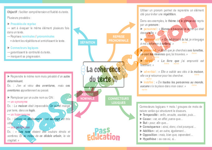 Carte mentale sur “La cohérence du texte (1)” pour la 2eme Secondaire .