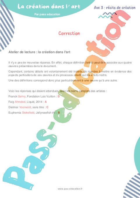 Correction Atelier de lecture La création dans l’art : 6eme Primaire rtf