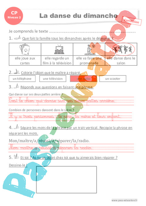 Correction Questionnaire La danse du dimanche : 1ere Primaire pdf