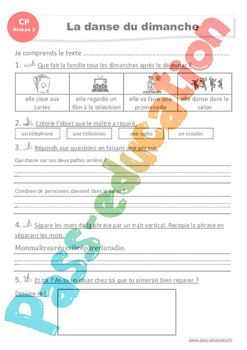 Questionnaire La danse du dimanche : 1ere Primaire pdf