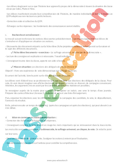 1. Fiche de préparation La démocratie, le suffrage universel – EMC : 4eme Primaire pdf