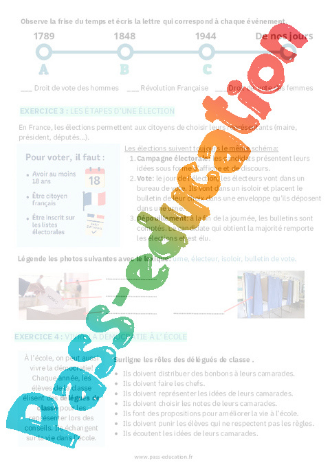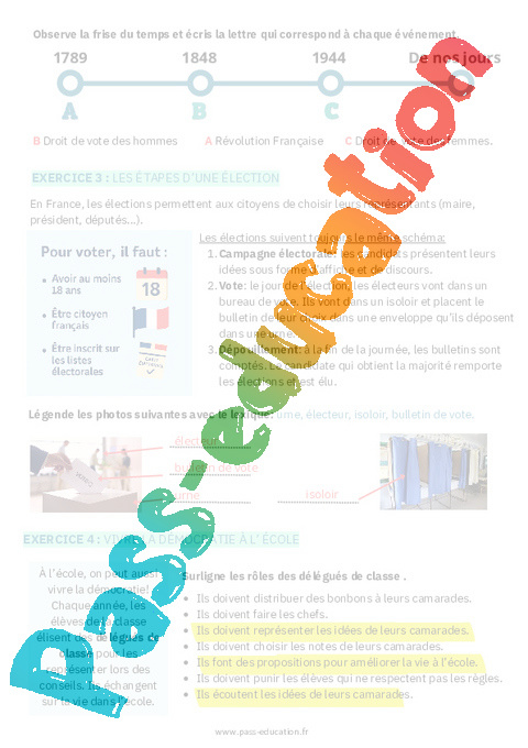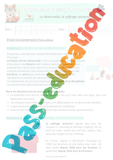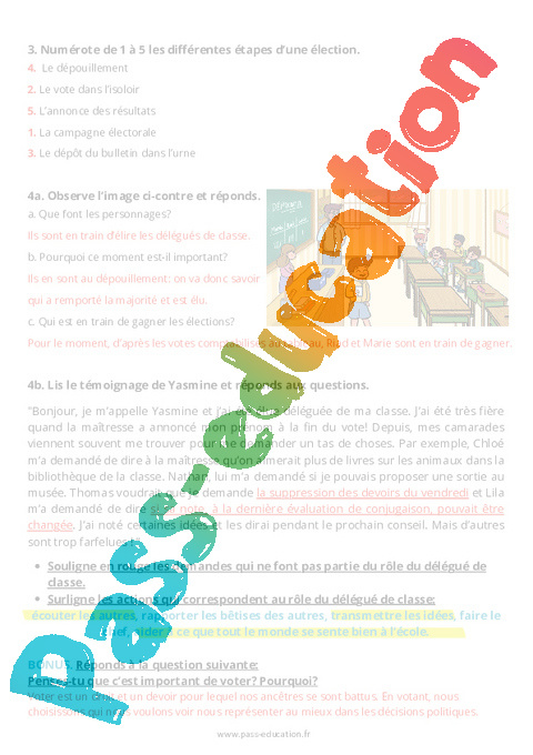 4. Correction Fiche élève La démocratie, le suffrage universel - EMC : 4eme Primaire pdf