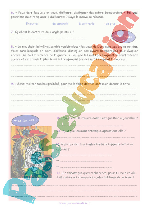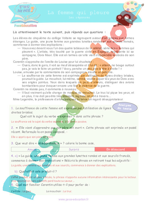 Correction La femme qui pleure : 6eme Primaire 1ere Secondaire – Littérature – T’as la réf rtf