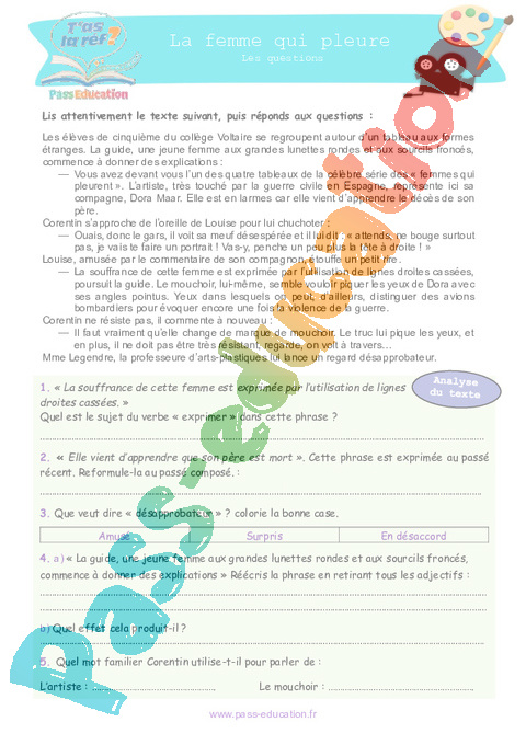 Correction La femme qui pleure : 6eme Primaire 1ere Secondaire – Littérature – T’as la réf pdf