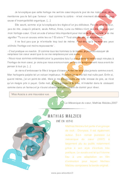 Littérature : 2eme Secondaire La mécanique du cœur (Mathias Malzieu) pdf