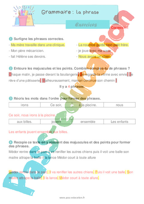 Evaluation Correction : 2eme Primaire La phrase rtf