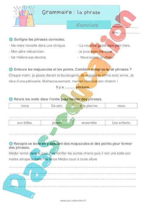 Exercices de grammaire pour la 2eme Primaire sur la phrase.