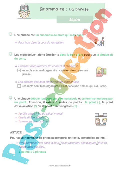 Leçon de grammaire pour la 2eme Primaire sur la phrase.
