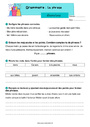 Évaluation de grammaire pour la 2eme Primaire sur la phrase.