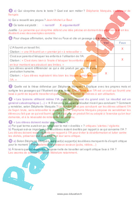 ❽ « Les lycéens utilisent même l’IA pour leur exposé du grand oral. Le résultat est en général catastrophique (…) » À ton avis, pourquoi le résultat n’est-il pas concluant ? Comment y remédier, selon Stéphanie Marquès ?