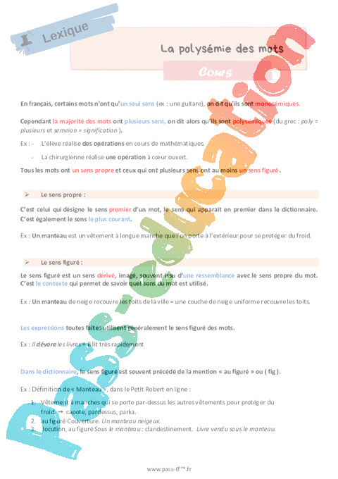 Leçon La polysémie des mots 6ème pdf