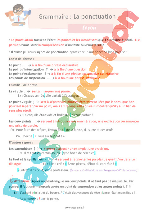 Leçon en grammaire : La ponctuation en 5eme Primaire .