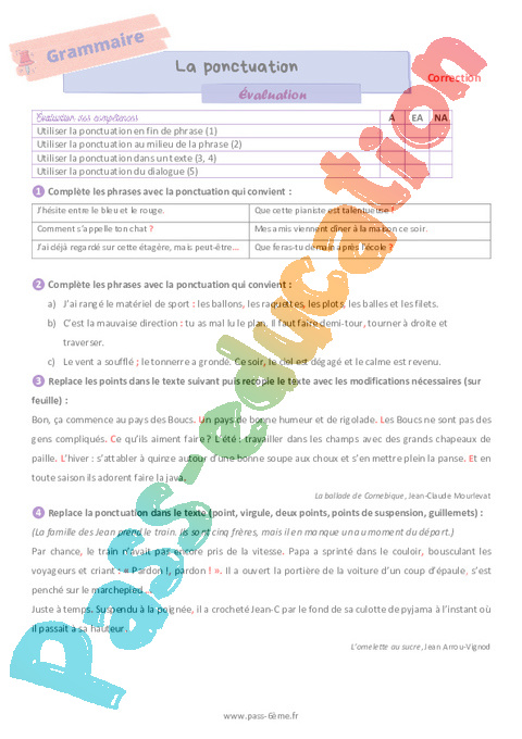 Correction La ponctuation – Evaluation de grammaire pour la 6eme Primaire pdf