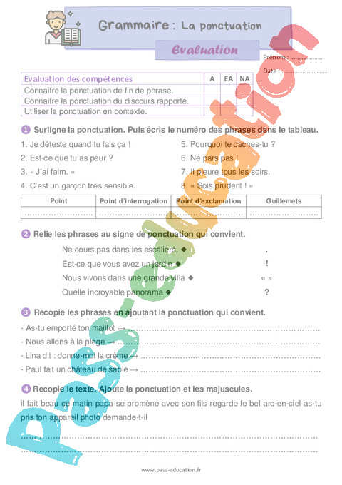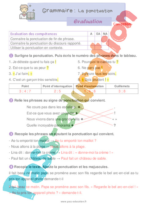Correction Evaluation La ponctuation : 2eme Primaire pdf