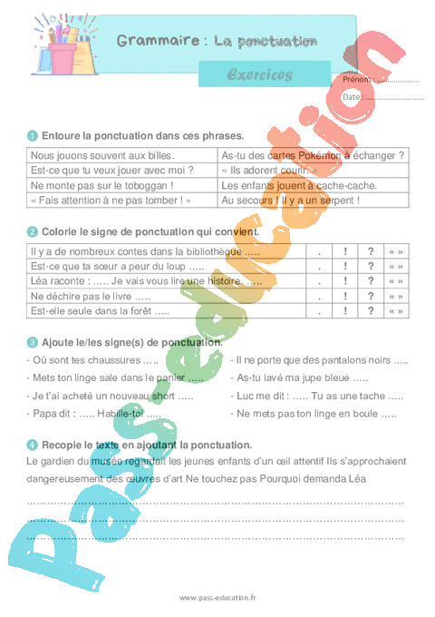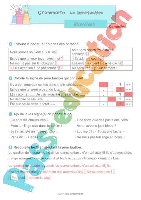 Exercices Correction : 2eme Primaire ponctuation de fin de phrase et les signes du discours pdf