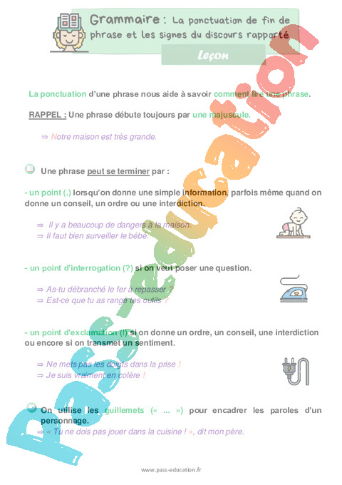 Leçon : 2eme Primaire La ponctuation de fin de phrase et les signes du discours rapporté pdf
