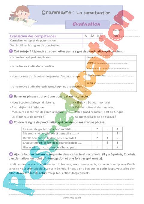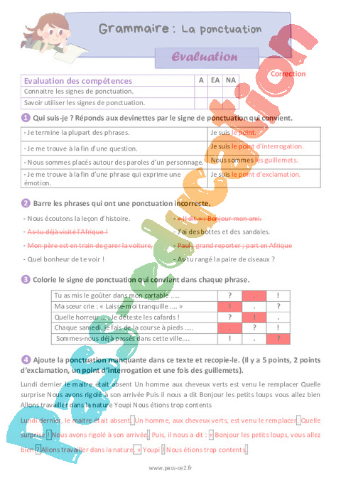 Correction Evaluation La ponctuation : 3eme Primaire pdf