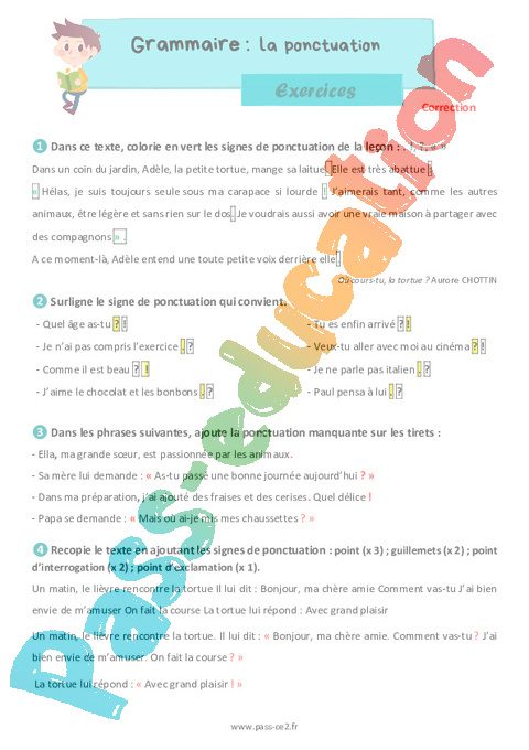 La ponctuation - Exercices grammaire pour la 3eme Primaire Correction pdf