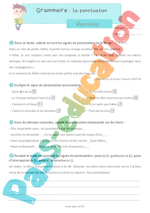 La ponctuation - Exercices grammaire pour la 3eme Primaire pdf