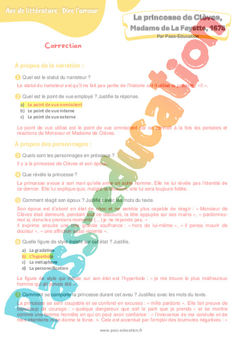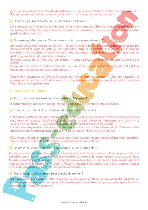 Correction Questionnaire La Princesse de Clèves (Madame de La Fayette) : 2eme Secondaire pdf
