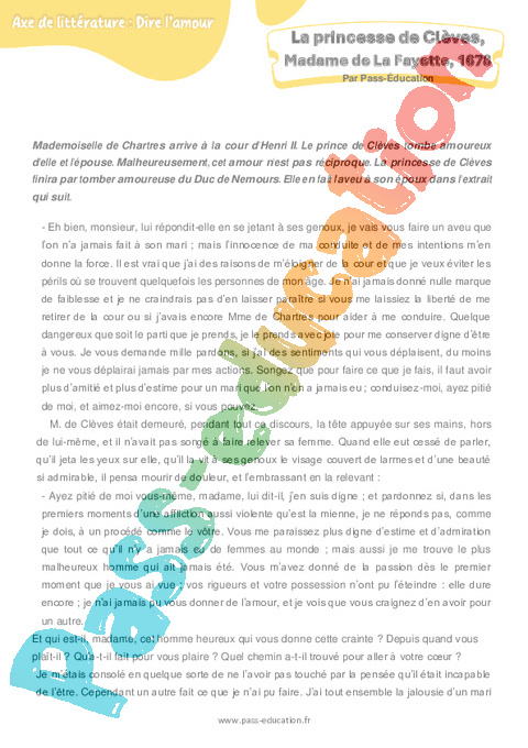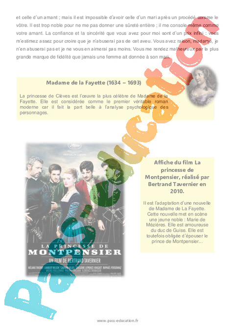 Littérature La Princesse de Clèves (Madame de La Fayette) : 2eme Secondaire rtf