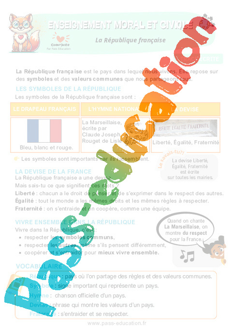 Leçon – La République française : 2eme Primaire – EMC Education morale et civique.