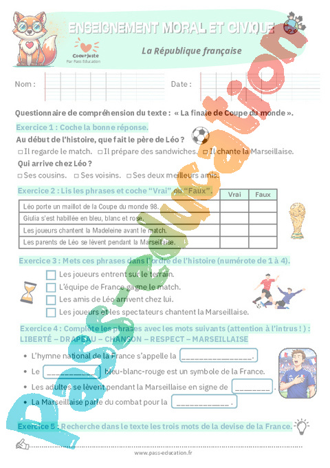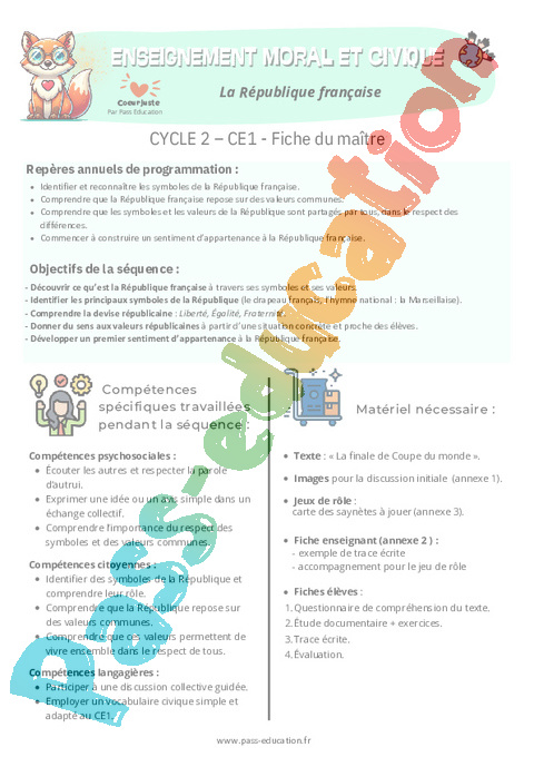 Fiche de préparation – La République française : 2eme Primaire – EMC Education morale et civique.