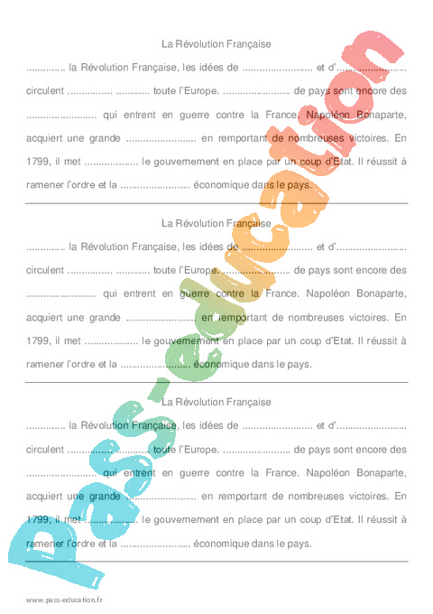 La Révolution – Noms féminins en -té ou -tié : 4eme Primaire – Dictée accompagnée n°7 pdf