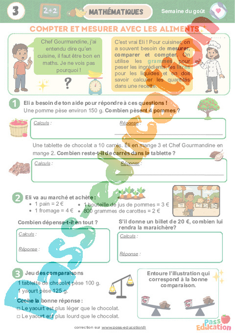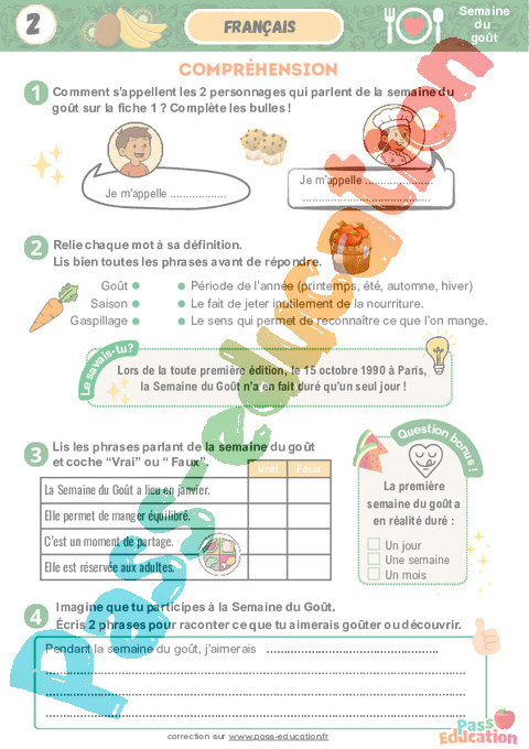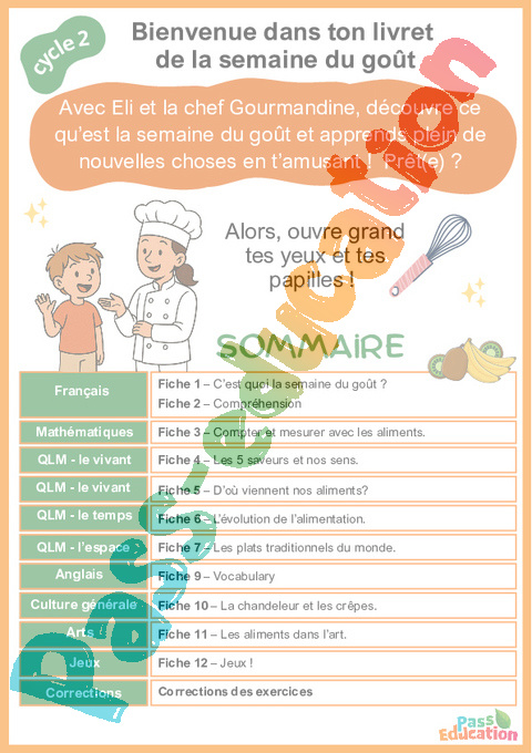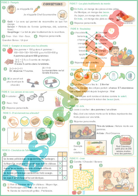 Correction La semaine du goût : 2eme, 3eme Primaire – Fichier d’activités pdf