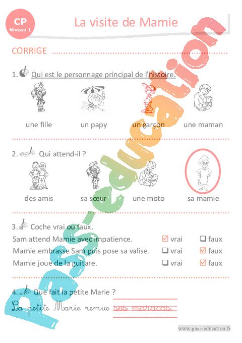 Correction Questionnaire La visite de Mamie : 1ere Primaire pdf