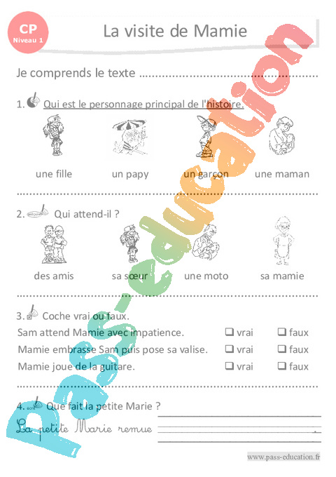 Questionnaire La visite de Mamie : 1ere Primaire pdf