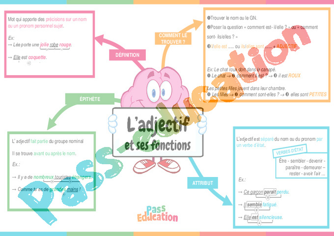 L’adjectif et ses fonctions – Carte mentale pdf