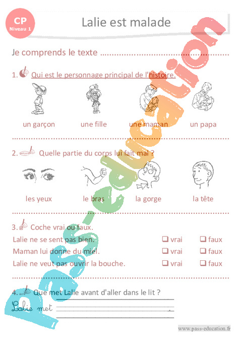 QCM Lalie est malade : 1ere Primaire – Luminéo pdf